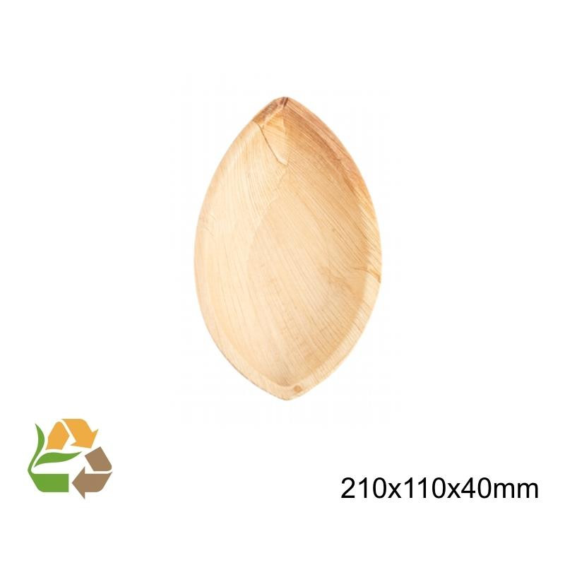 Descripción: Mini Bandeja Barco desechable para salsas y pequeñas degustaciones, fabricado con Hoja de Palma; un material Biodegradable compostable.