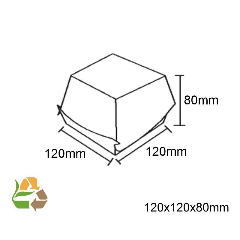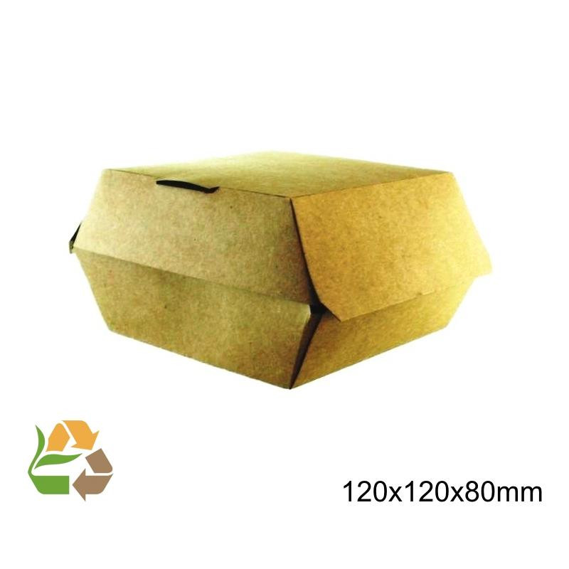 Caja Kraft ECO para Hamburguesas Grande 120x120x80mm fabricadas en cartoncillo.