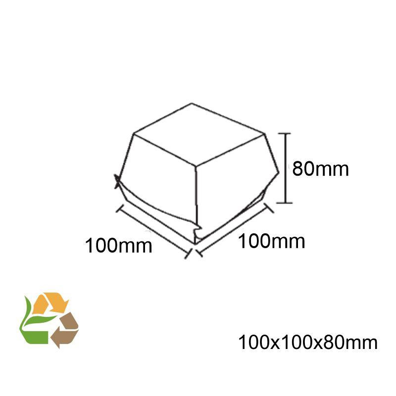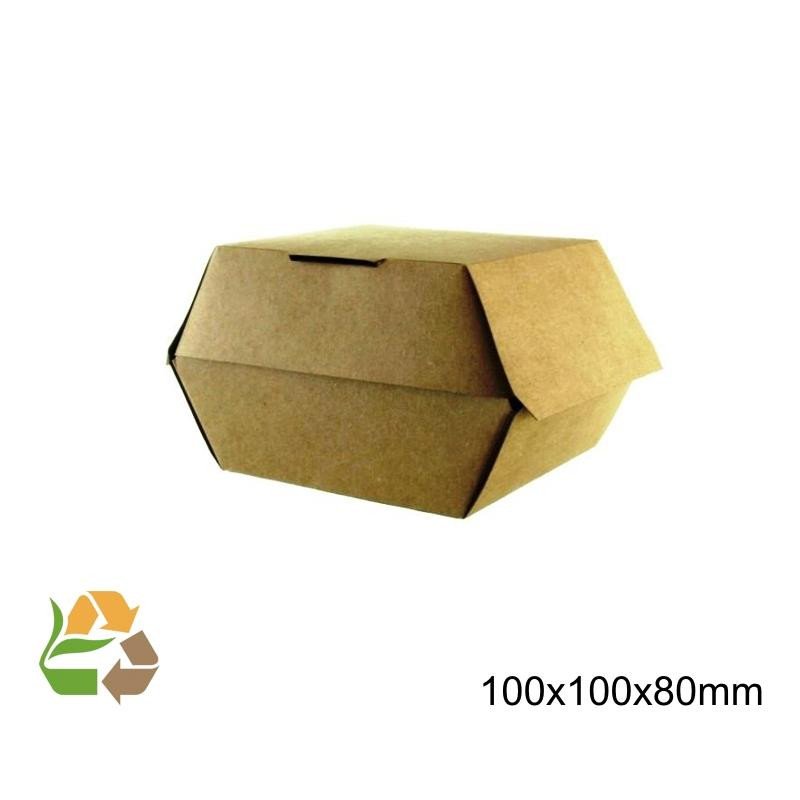Caja Kraft ECO para Hamburguesas Pequeña 100x100x80mm fabricadas en cartoncillo.