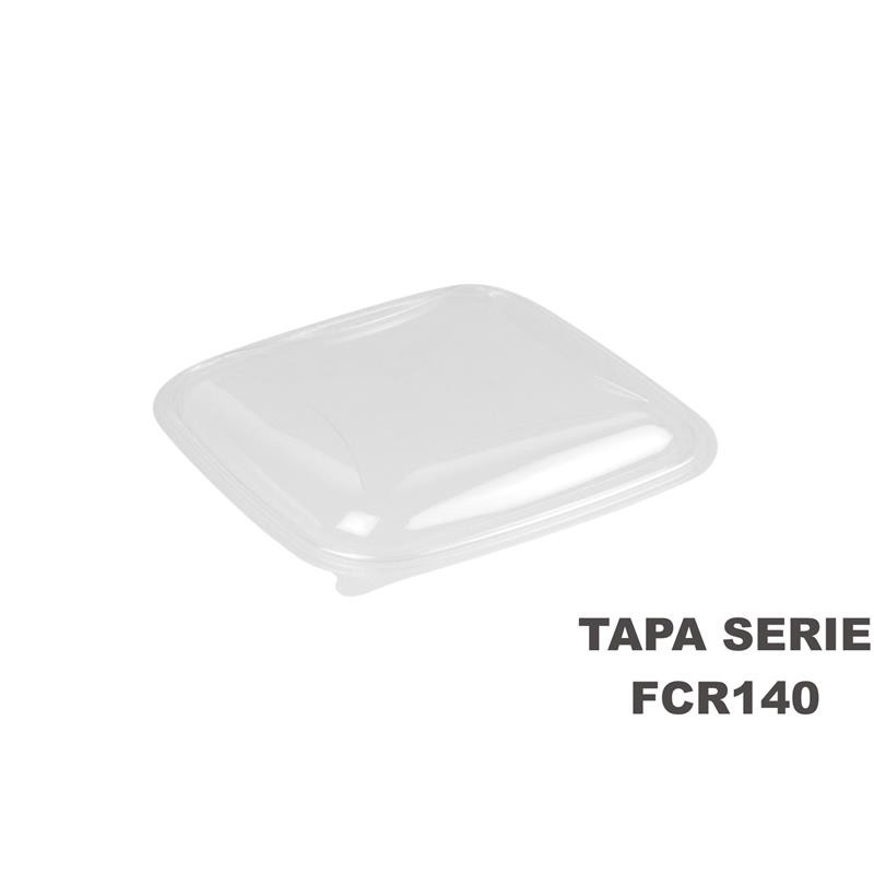 Tapa Plana de Plástico Transparente para envase de base cuadrada 140mm de diámetro, fabricada en PET.
