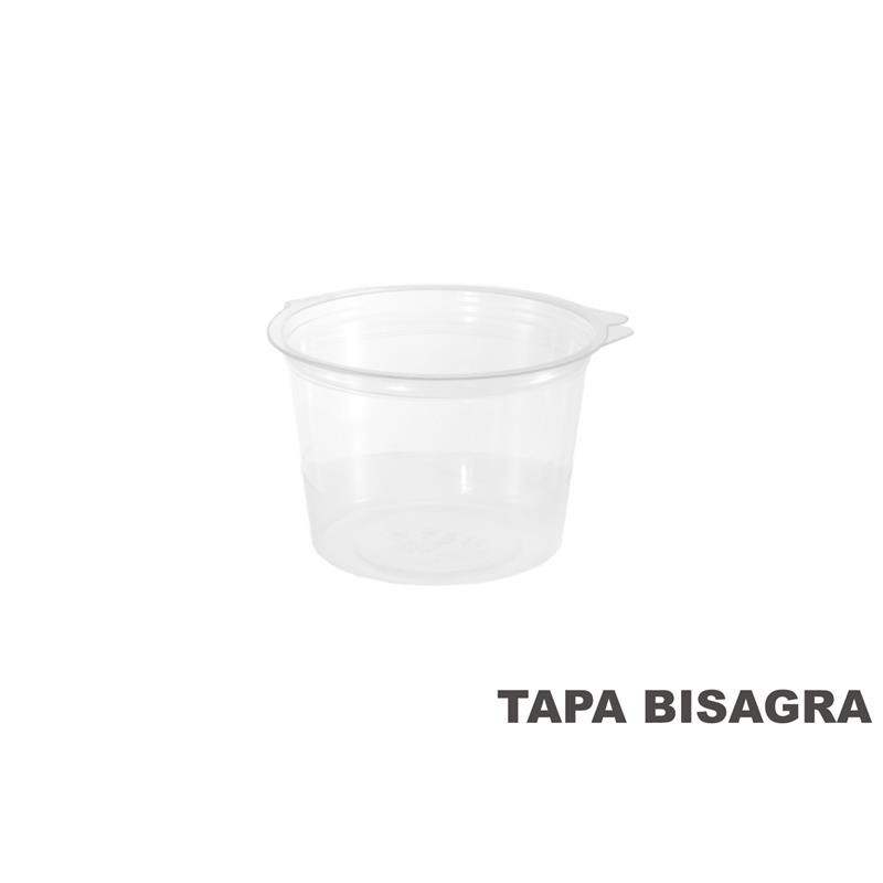 Descripción: Envase Circular con Tapa Bisagra, fabricado en APET Transparente de 500cc