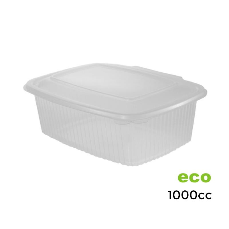 Presentación: Tarrina bisagra de plástico de 1000cc en cajas de 400Unidades.