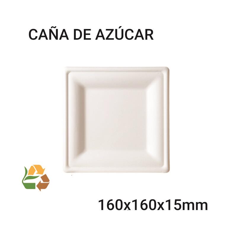 Plato de Caña de Azúcar Cuadrado respetuoso con el medio ambiente, ecológico y aptos para usar en Microondas.